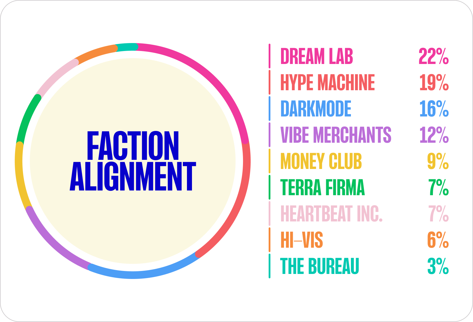 Dream Lab pulled the biggest crowd — Christchurch's Armageddon audience skews creative, entrepreneurial, and design-minded. No surprises at a pop culture expo. But the Vibe Merchants punched way above their weight in points despite being only the 4th biggest faction. Quality over quantity.